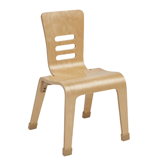 Perfect for class time or play time! Chairs stack four high to save space when not in use. Bentwood Chairs are made of multi-ply birch with a uni-body design contoured for healthy posture, smooth rounded edges, and non-scuff boots to reduce noise and protect flooring. Check for loose or worn parts periodically and tighten or replace as necessary. Use a clean, damp cloth or sponge with mild soap, non-bleach detergent, or general purpose cleaner. Abrasive cleaners or powders should not be used as they may permanently dull or scratch the surface. Remove chairs from service if boots become loose or are missing. Replacement boots available.