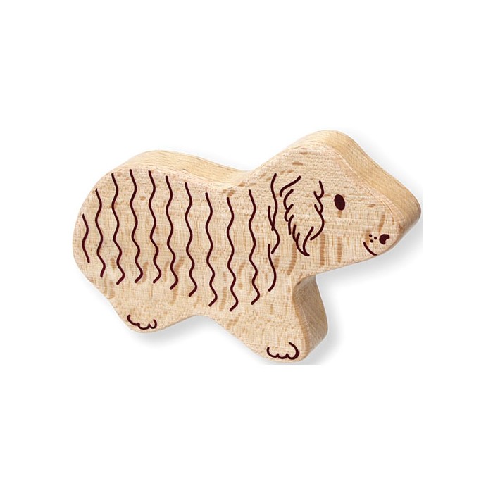 Music Time Animal Shakers feature beautiful, all wooden construction and are filled with dried vegetables that provide a unique maraca or rattle sound. The Dog Shaker intentionally produces a softer and intriguing sound for young ears. Safe, water based finish is sanded perfectly smooth. Recommended age: 3+