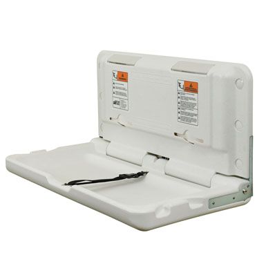 A convenient and comfortable place for Mom or Dad to change baby on-the-go! Designed for use in commercial environments such as schools, restaurants, and businesses. Easy-to-clean changing station features a diaper bag hook for added convenience, a safety strap, and pneumatic cylinder for controlled, slow opening and closing of the changing shelf.