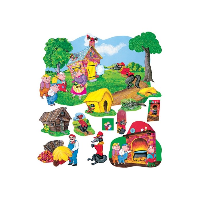 Includes story, activities, coloring sheets, 23 figures, house with peek-in doors, windows and fireplace plus a summer background. 14" x 21"