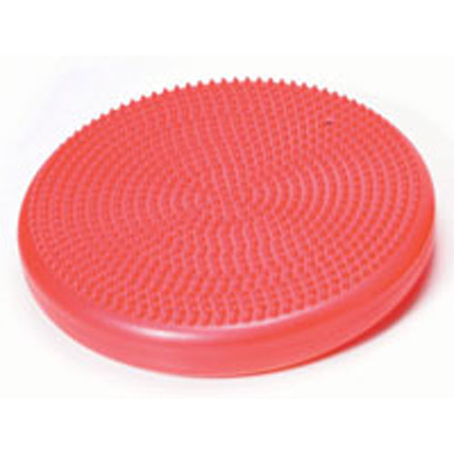 An inflatable dynamic balloon, mimicking both the movement and shape of the Gym balls in any seat. It can be used on the floor for balance training and the strengthening of the lower muscles. Its front side with pimple-studded surface and backside with smaller bumps provides different terrain to enhance the sense of touch and coordination. The 35cm (13.5") diameter Air Cushion is suitable for children ages two and up.