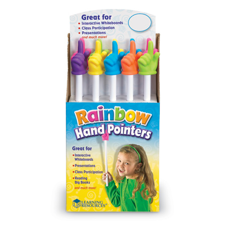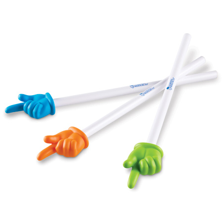 Colorful, hands-on pointers are easy to see against whiteboards and other light backgrounds.
