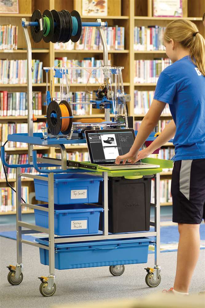 As schools begin to explore the exciting capabilities of 3D Printing, the need to properly store the required tools and materials increases. The TD5000 3D Printer Cart allows printing equipment to be shared around the school easily and keeps everything that you need close at hand. The 3D Printing Cart is also ideal for libraries where diverse creative activities are undertaken and space is limited. Get the TD5000 for your classroom or library.