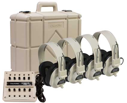 Listening centers help teachers offer differentiated learning opportunities to smaller groups of students. The Califone series of Stereo Listening Centers tailor this learning experience to the media source already in your classroom or library. The rugged jackbox of this four position system has both 3.5mm and 1/4” plugs to connect to the most popular audio players (including computers and stereos) and offers room for expansion with spots for six extra listeners. Like the jackbox, the high quality stereo headphones are also made with rugged ABS plastic so they won't shatter. They feature ambient noise-reducing earcups which block out external noises and reduce the need to increase the volume. The Headphone Rack or Storage Case will keep everything organized until the next activity.
