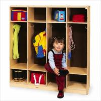 This 4-section coat locker keeps coats, footwear, lunch boxes and back packs separate and organized. Each coat compartment has two sturdy double hooks. Sturdy Birch laminate construction.