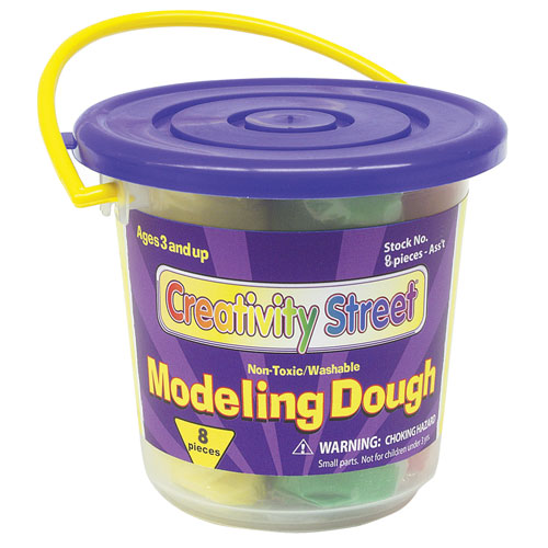 8 Colour 2 lb Modeling Dough This Modelling Dough is extremely soft and durable. Ideal for toddler's and young children. This assorted tub includes 1/4 lb. each of red, yellow, blue, green, pink, white, purple and orange.