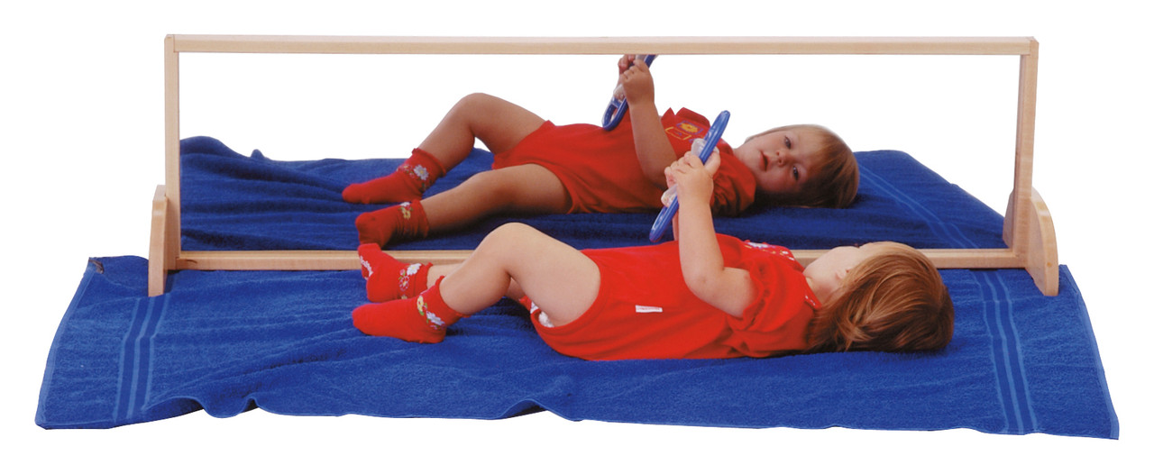 ACRYLIC MIRROR - Put a smile on a child's face with this distortion free acrylic plastic mirror. It's the perfect size for kids. The legs can be removed to allow vertical or horizontal use.