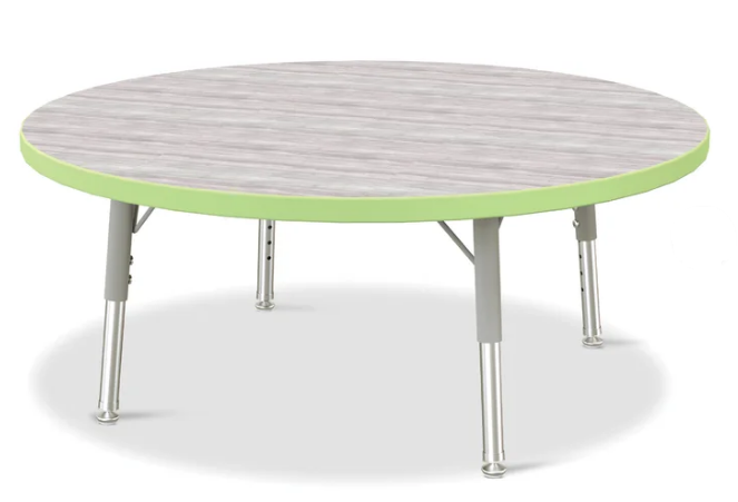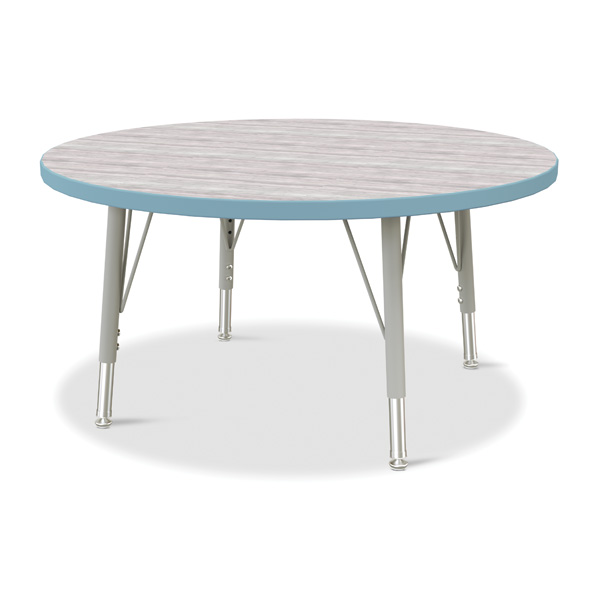 These round tables are excellent for allowing children to interact with each other during projects. Accommodates up to 4 chairs. The legs feature glides that reduce noise, prevent snags, and resist rust. Driftwood Gray tabletop with Gray TRUEdge and Gray legs
