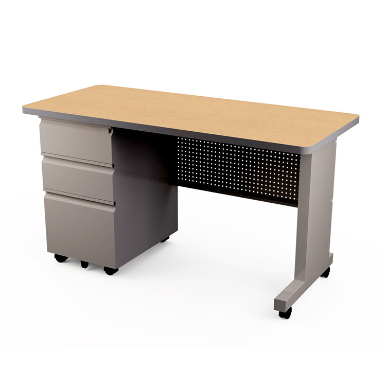 Mobile Single Pedestal Teacher Desk with Rectangular MTSP2454