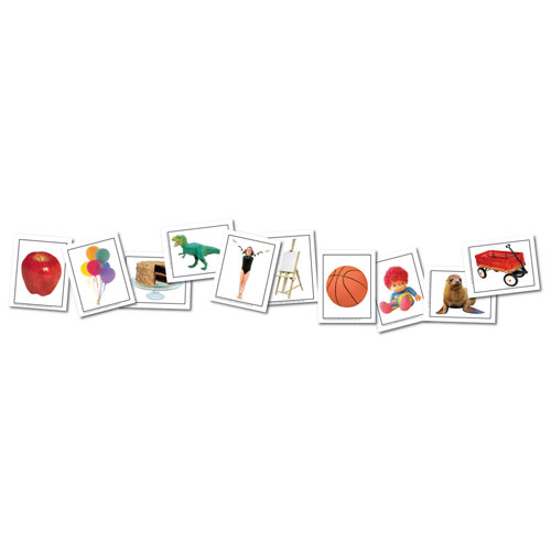 There is lots of letter fun to be had with Alphabet Photo Objects Photographic Learning Cards! This set of learning cards contains 108 cards measuring 2 7/8" x 3 5/8". Cards feature objects with names that begin with each letter of the alphabet. A fun way to explore initial consonant sounds as well as long and short vowels. Cards are great for alphabet games and activities like sorting and classifying objects by sound or letter. Watch as kids build early language and reading skills. These vocabulary building Photographic Learning Cards from Carson-Dellosa are also ideal for English language learners of any age.