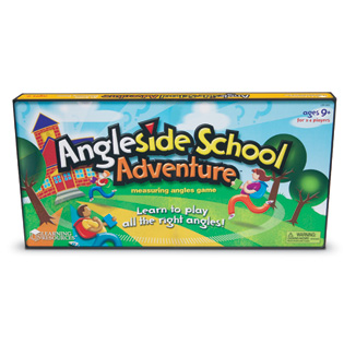 Angleside School Adventure™ Angle Measurement Game - Ages 9-13 - Approach math practice from a new angle! Kids explore geometry and measurement as they move around the school using a built-in compass. Game cards direct players to measure, compare and categorize angles. Includes 19" diameter game board, 60 cards, game markers, die and guide. For 2-4 players.