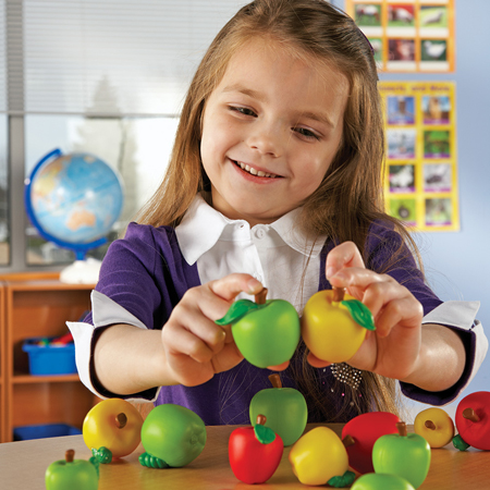 Compare apples to apples with this unique set! Sort and classify apples by 5 attributes including size, color and physical features (stem, leaf, worm).
