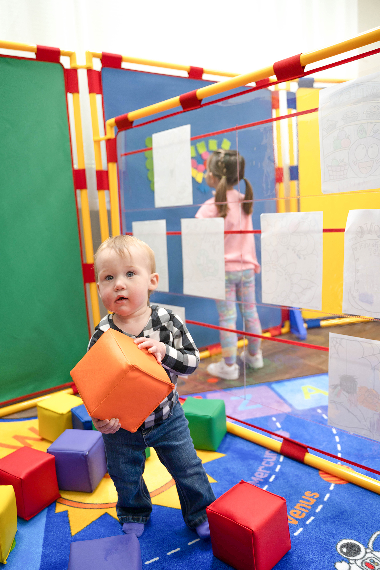 Big Screen Super Set with these big 4' x 5' Big Screens you can build your own discovery and activity centers and the Big Screens Super Set of 8 portable Big Screens solves even the toughest space issues. Different solid color plain panels combine with a hook n loop surface screen, See-Thru Mesh screen, Transparent vinyl and Art Display super size screens. Children's Factory Big Screens Super Set comes complete with flexible hinges for attached flexibility and fold-up storage. 4 portable Cantilever Legs included for stability. Hook n loop panel is shown in black, actual color is blue Recommended for ages 18 months through 7 years. Children's Factory educational toys and climbing blocks meet California TB117 Fire Retardant Standards. No lead or latex is used in these products. This US manufacture uses virgin (not previously used) materials to ensure top quality. The outside covering is washable with a bleach/water solution and is highly resistant to tearing. The inside core is virgin urethane foam that meets all environmental and California Fire Code Requirements.
