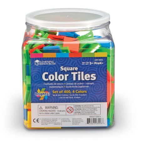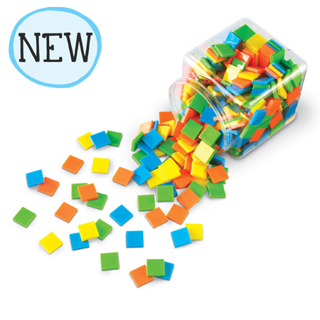 Sort them, stack them, or line them up—the same versatile color tiles you know and love have a bold new look! Introducing Brights!: teaching tools you trust, in cutting-edge colors they’ll embrace. Deluxe set of 400 durable plastic tiles features 4 new colors, including melon orange, electric blue, neon yellow, and fluorescent green! Perfect for engaging students in lessons involving simple patterning, one-to-one correspondence, addition and subtraction, and more. Your classroom will never look the same!