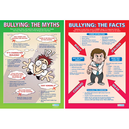 Bullying occurs in every school in some form. This 3-poster set teaches students how to recognize the signs of bullying, how to protect themselves and how to react when they are being bullied. Set includes Bullying: The Facts, Bullying: The Myths and Don’t Be a Victim.
