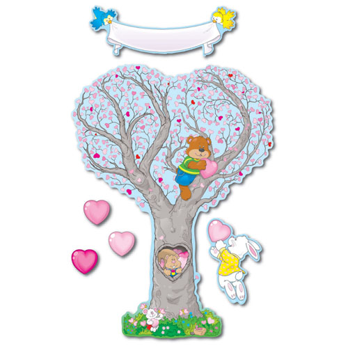 Celebrate caring and sharing with the Carson-Dellosa Caring Heart Tree! This colourful Bulletin Board Set with resource guide includes one Caring Heart Tree that measures 31" x 42", 35 coordinating heart accents and one bunny figure. Two little birds hold on to the blank banner style header. A perfect Bulletin Board Set for Valentine's Day!