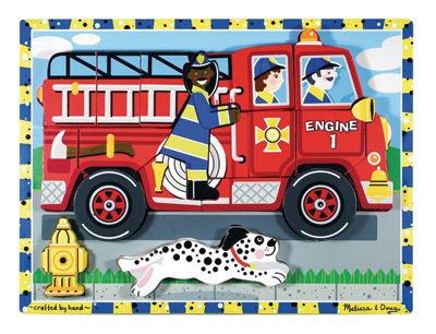 These puzzles feature thick, chunky pieces that fit neatly into the puzzle board, and can also stand up to be used for pretend play. Set of 4 puzzles each have 7-18 pieces. All puzzles measure 30cm x 23cm (12" x 9"). Ages 2+.