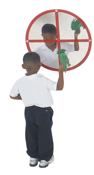 Made to look like a round window, the Childrens Factory Circle Window Pane Mirror has a red frame that brings it a bold, fun look. This durable mirror is made of shatter-resistant acrylic with smooth edges for safety. Kirkwood, Mo, 1982 - The Children's Factory was created in the attic of its founders. Their vision was to create a soft play environment where children could play safely. They started with a basic 3D animal shape perfectly sized for a young child. From there, other products were developed and the company quickly grew in size. Soft, safe, creative play is their passion. Their products are designed towards ASTM standards and their materials meet or exceed the CPSIA requirements. (CFY318-1)