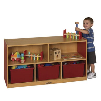 Our storage cabinets are just the place to keep books, toys and games organized—perfect for use in school and at home! Easy-to-clean stain resistant laminate cabinets feature a maple finish, with your choice of side panel accent color. Features five compartments, which accommodate our storage bins for easy storing of odds and ends.