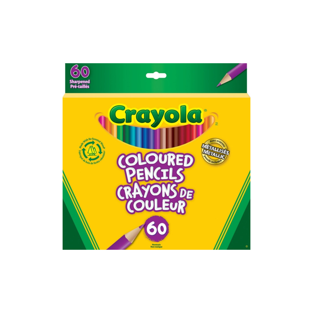 Crayola® Coloured Pencils feature a thick lead for smooth drawing and colouring. They come pre-sharpened for convenience. For best results use a hand-held sharpener. Pack of 60