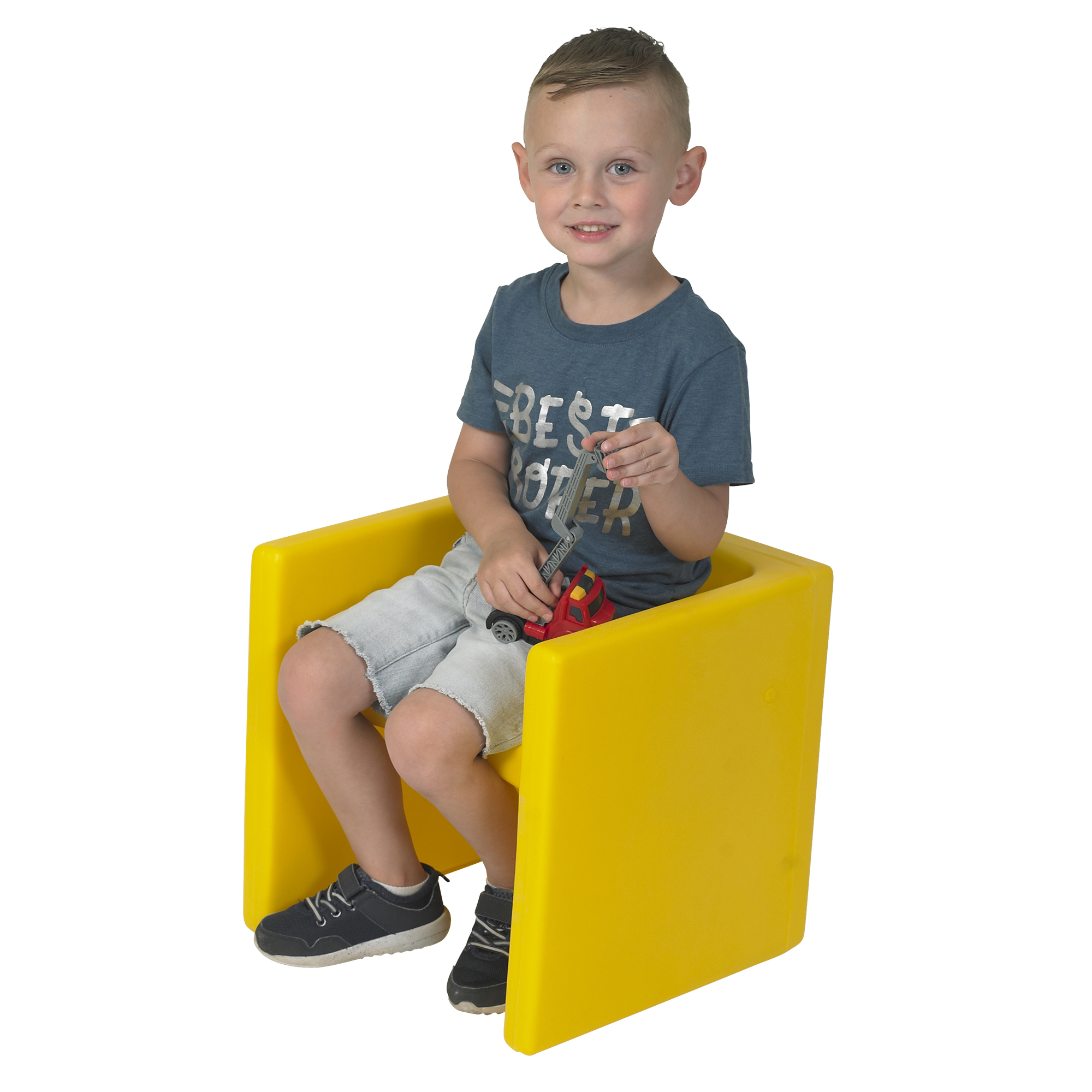 Cube Chairs are a versatile 15" three in one lightweight chair. Use it as a chair, seat or as a table. Durable yet lightweight chairs are made of LLPDE material and feature gently rounded corners. Can be used indoors or outdoors! Set includes one blue, green, red and yellow chair.