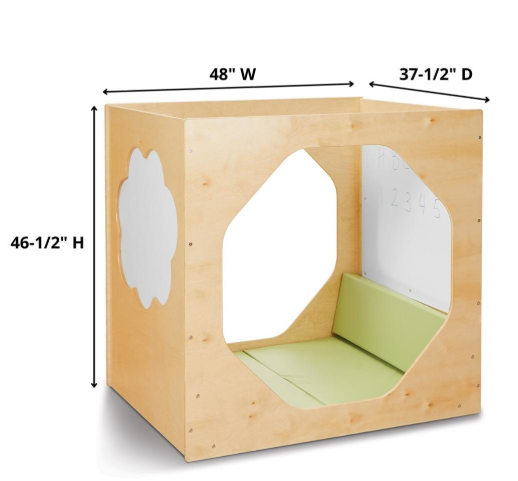 Create a retreat for students to separate themselves from the hustle and bustle of the classroom. Perfect for reading, studying, and relaxing, the Dream Cube features comfy cushions that are easy to clean and angled back rests. Double-sided Write-n-Wipe surfaces on the sides provide a space for students to jot down ideas, learning concepts, and work out problems. Large cutouts in the sides and the open top give teacher visibility. Made of Baltic Birch Plywood. ****Special Order