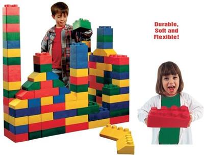 Bendable, twistable and stackable blocks are perfect for creative building! Soft materials improve construction site safety and the bright colours are appealing to children. Incredibly durable and washable