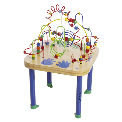 The Finger Fun Table is ideal for spaces where floor space is restricted. This colourful, square maze table makes a great activity centre for up to four children. There are lots of colourful beads for kids to guide through the challenging mazes. The table top has colourful hand print graphics, adding to the Finger Fun Table’s visual appeal and inviting kids to match their hands to the ones on the table. The durable steel legs can be bolted to the floor for added stability. This activity table measures 44cm x 49.5cm x 76cm (17.5’’ x 19.5’’ x 30’’). Recommended for kids ages two and up.