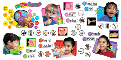 Five Senses Real kids and cartoon pals illustrate the five senses. Interactive pieces for multiple activities. Cutouts and Discovery Guides. 50-piece set. Grade: PreK-3