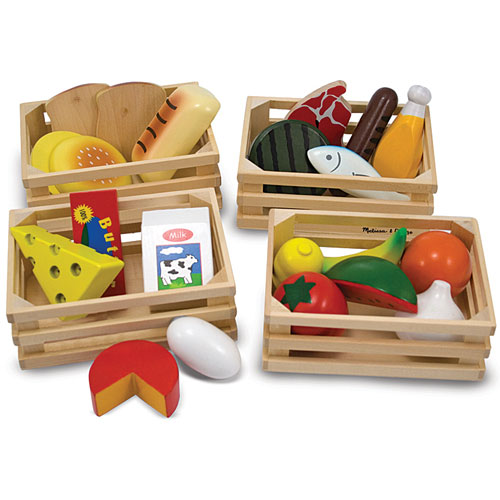 Explore nutritious food choices with Food Groups. This play food set includes items from each of the food groups to help children learn about balanced meals through playtime. Each food group comes in it's own crate for easy sorting and storage. A Melissa & Doug must have for any pretend kitchen or store. Suitable for children three years of age and older.