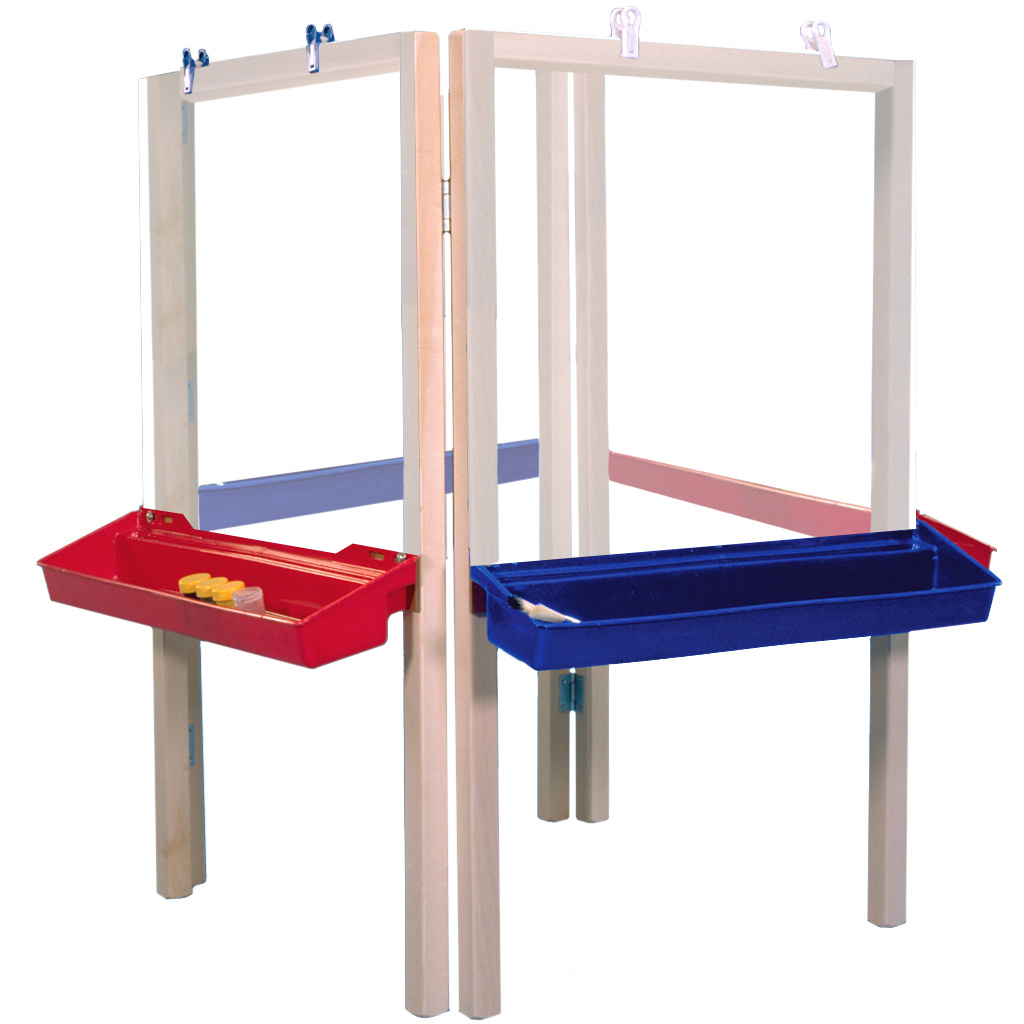 Minimum space! Maximum fun. 4x 61 cm (24") wide panels adjust from 99-122 cm (39"-48") high. Solid maple frame with acrylic panels folds easily for storage. Easy clean durable plastic trays.
