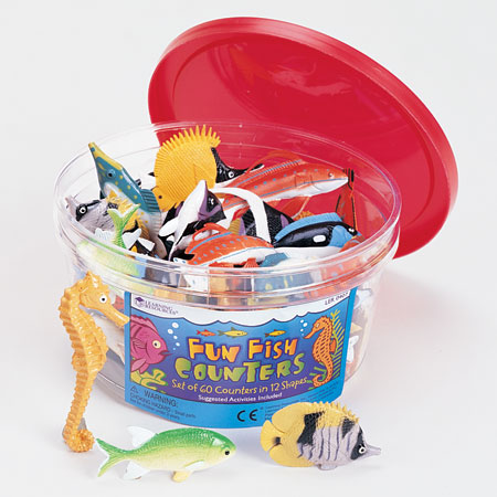 Beautifully detailed fish counters in 12 realistic shapes are great for party favors, storytelling or even rewards! Set includes 60 counters packaged in a reusable storage container.
