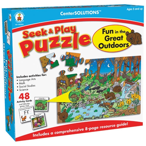 CenterSOLUTIONS Seek & Play Puzzles are excellent classroom tools that encourage logical thinking. The Fun in the Great Outdoors puzzle contains 24 pieces, a full-color mat, and an eight-page resource guide. Once students complete the puzzle, the learning fun continues with 48 activity cards, cross-curricular questions, and thought-provoking writing prompts. Give your young learner the puzzles they love combined with the early learning skill practice they need.