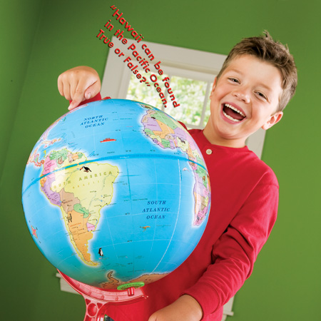 # Walks young explorers around the world, pointing out cool facts about countries, landforms, cultures, bodies of water and more; all are labeled