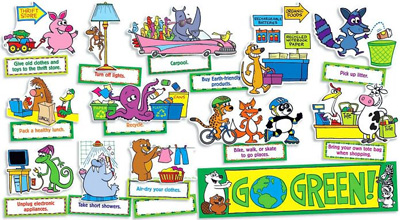 Go Green! 14 eco-friendly scenes, 14 matching labels, 1 blank labels, "Go Green!" banner (6"x24") Grade: ALL AGES