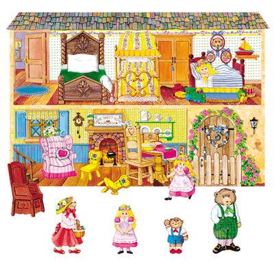Goldilocks & The Three Bears Set includes: Two-Story House - 16" x 23", 10 figures - 3" to 5", Story, Sequencing Page, and 5 Colouring Sheets. Grade: All