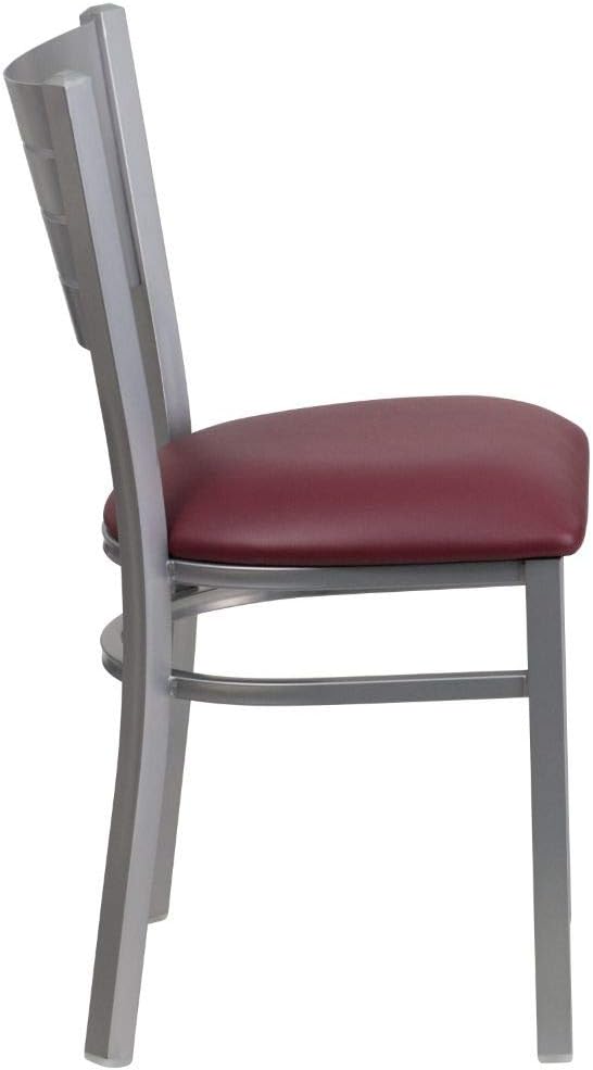 HERCULES Series Silver Slat Back Metal Restaurant Chair - Burgundy Vinyl Seat