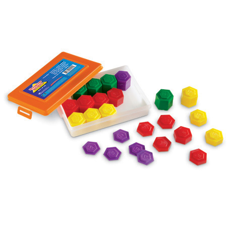 Explore weight and measurement with these easily stackable Hexagram® Weights. Color-coded weights offer visual cues in measurement activities. Set of 54 includes twenty 1g, twenty 5g, ten 10g and four 20g weights.