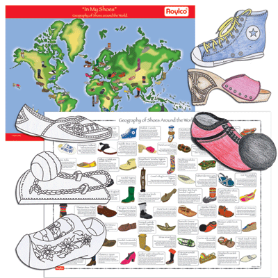 Explore cultures, geography, history, and traditions from around the world with this fun activity. Large reproducible line drawings can be colored then discussed. Learn why shoes look the way they do, why they are made and what they are made of. Informative poster is attractive in any setting. 45 reproducible line drawings.