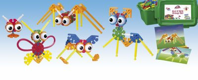Big, soft, chunky pieces can be used by children with varying manipulative skills. Build 8 models from 1:1 correspondence cards or create your own creatures using the 131 parts, including 10 eyes and 2 ears/wings.
