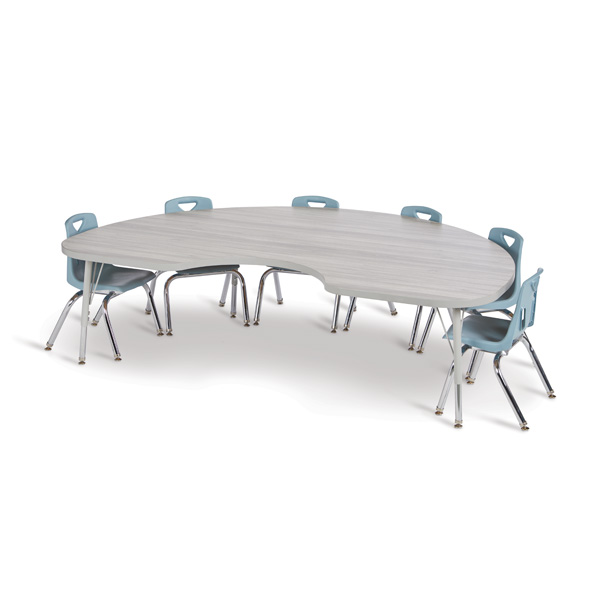 This tables are excellent for allowing children to interact with each other during projects. Accommodates up to 6 chairs. The legs feature glides that reduce noise, prevent snags, and resist rust. Driftwood Gray tabletop with Gray TRUEdge and Gray legs.