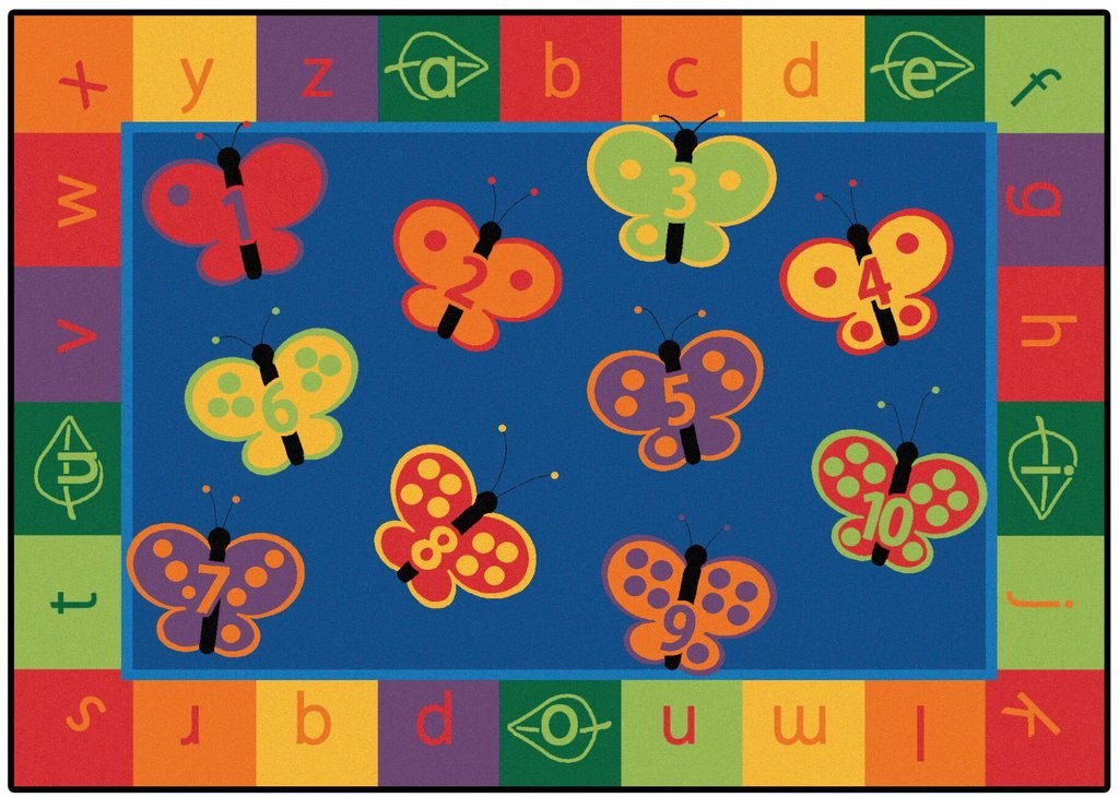 The KIDSoft 123 ABC Butterfly Fun Rug is a beautifully designed learning rug with vibrant colors and a nature motif that is sure to draw even the most reluctant student to circle time activities. There are 10 fanciful butterflies in the center of the rug to make learning numbers 1 - 10 fun!