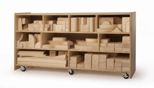 The Large Book Cabinet by Whitney Brothers is a Dado wooden construction containing storage shelves. It features 9 bigger storage compartments plus a top shelf for additional utilization. The unit is backed by a hardboard panel so as to keep blocks in place. It has a natural, durable finish and comes on wheel casters. Adult assembly is required. It is designed for school-going children and can be placed in libraries, classrooms and learning centers.