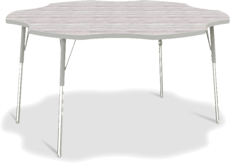 This tables are excellent for allowing children to interact with each other during projects. Accommodates up to 6 chairs. The legs feature glides that reduce noise, prevent snags, and resist rust. Driftwood Gray tabletop with Gray TRUEdge and Gray legs.