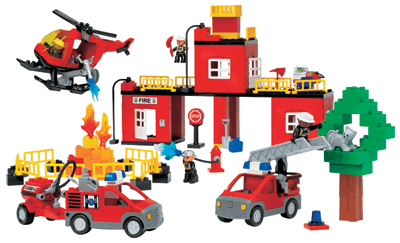 LEGO Fire Rescue Service 129 pieces This DUPLO set is super for groups of children working on themes of community care or for recreating the drama and excitement of fire rescue services. There are endless possibilities with the range of vehicles, DUPLO firemen and suggested settings.