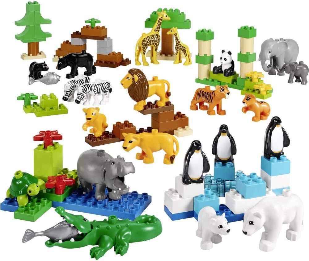 Contains 24 unique LEGO DUPLO animal figures and bricks to construct forest, jungle, sea, and river habitats