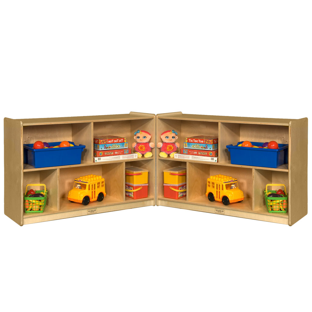 10 spacious storage compartments. Versatile hinged design allows use as a room divider. Baltic birch plywood construction. Easy to move. Great for those who need space for those large awkward games and toys. Comes with four casters EACH UNIT.