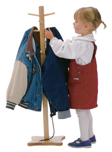 This coat tree is made of solid maple and includes eight wooden pegs for hanging coats. Dimensions 38"H X 9"W X 9"D.