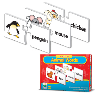 This colorful set of 30 animal puzzle cards provides children with an excellent introduction to the animals. Each card features a picture of an animal and the animal's name. Simply match the name to the picture to complete the puzzle. The puzzles are self-correcting as no two puzzle cuts are the same. A fun way to learn about animals. Recommended for ages three and up.