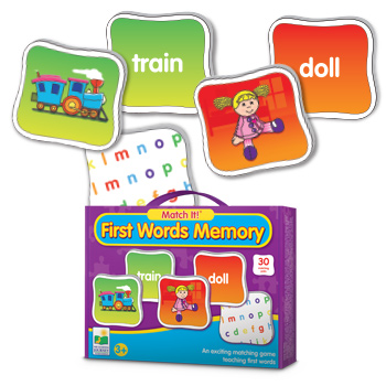 Match It! First Words Memory is a fun memory game that will challenge problem solving and develop memory skills of young children as they try to find a pair of matching cards. Bright, colorful illustrations help children learn first words through images and reading.